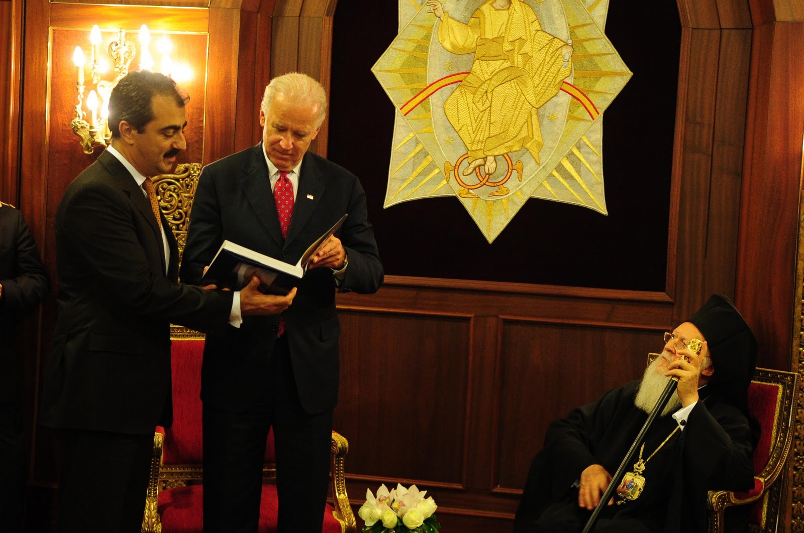 Ο αμερικανός αντιπρόεδρος επισκέφθηκε το Οικουμενικό Πατριαρχείο συνοδευόμενος από τον πρέσβη των ΗΠΑ Φράνσις Ρικαρτόνε, και τον πρόξενο των ΗΠΑ στην Κων/πολη Σκοτ Κίλνερ.