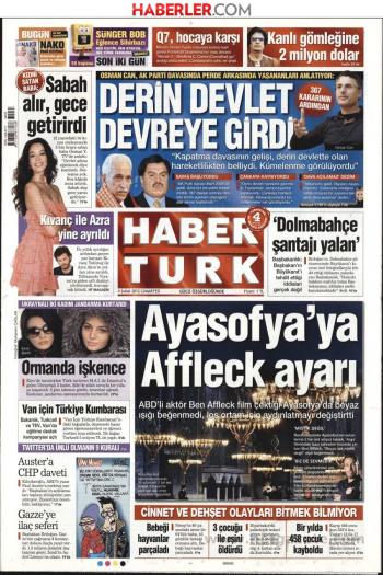 « Αλλαγές στην Αγία Σοφία λόγω του Άφλεκ» είναι ο τίτλος της εφημερίδας Habertürk.