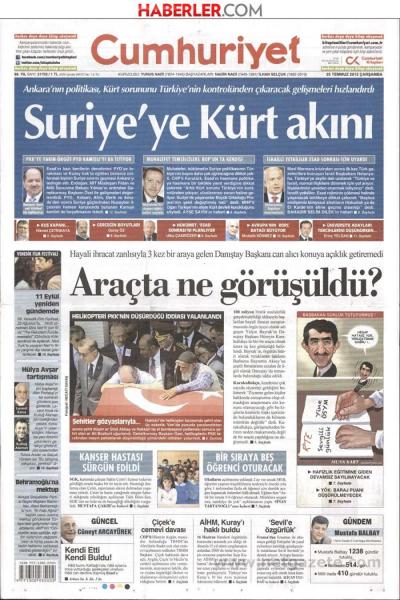H τουρκική εφημερίδα αναφέρει πως "η πολιτική της Άγκυρας επιτάχυνε το Κουρδικό ζήτημα το οποίο θα βγει απο τον έλεγχο της Τουρκίας" .