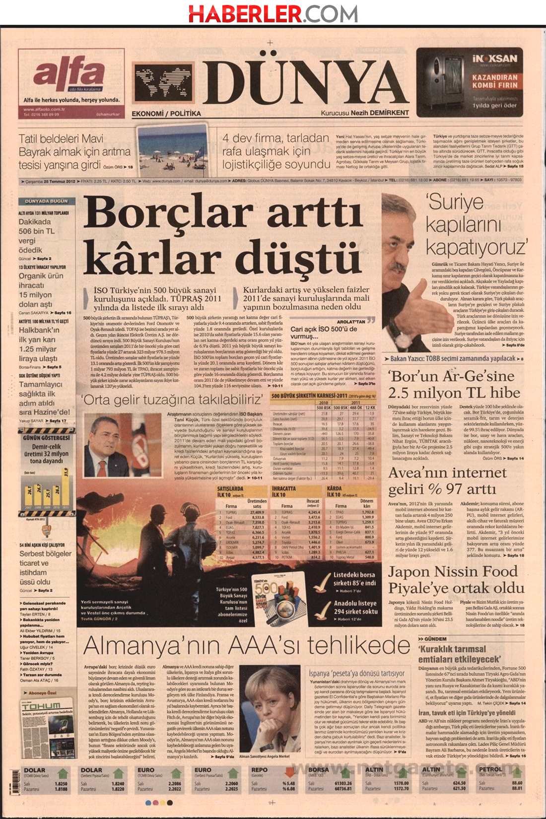¨Αυξύθηκαν τα δάνεια , μειώθηκαν τα κέρδη" είναι ο τίτλος της τουρκικής οικονομικής εφημερίδας Dunya.