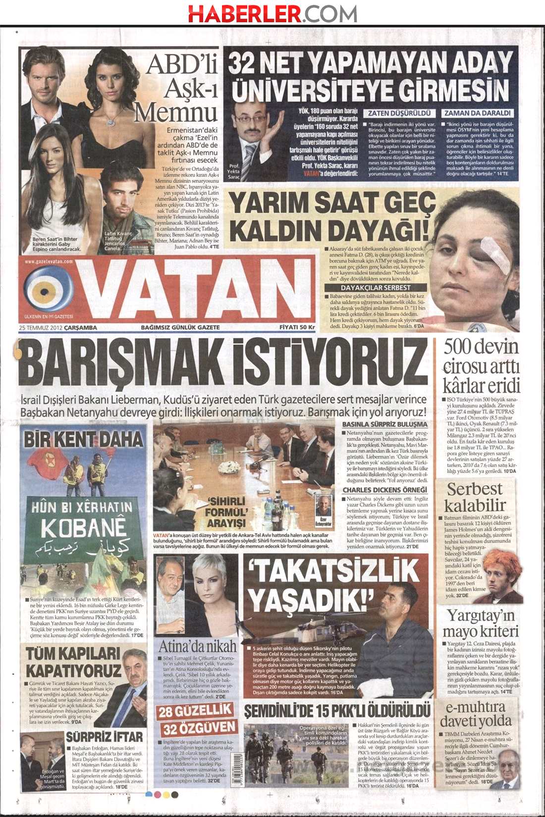 " Θέλουμε να συμφιλιωθούμε" είναι ο τίτλος της Vatan.