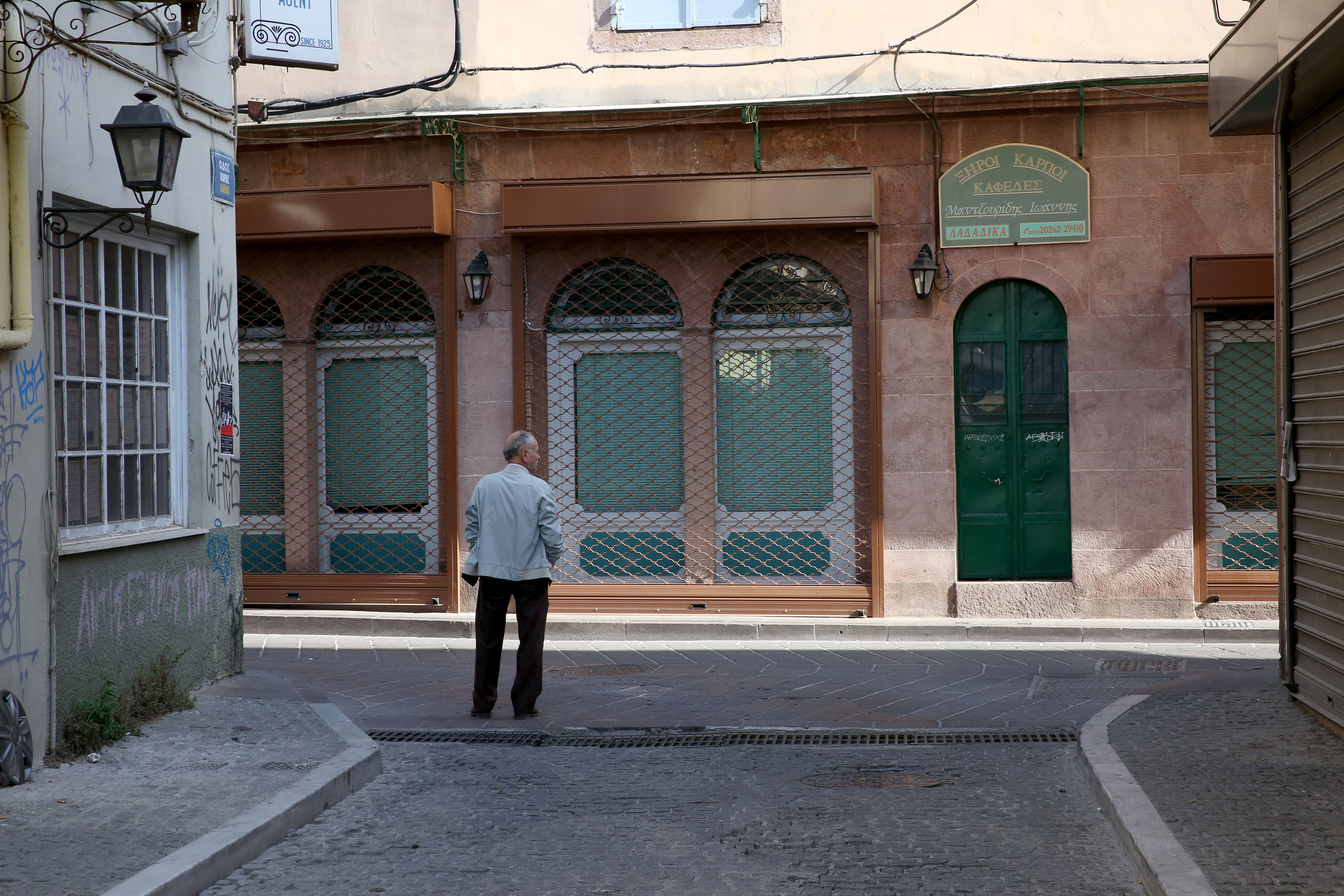 Οπως φαίνεται και στις φωτογραφίες πολλοί ιδιοκτήτες καταστημάτων κράτησαν κλειστά τα μαγαζιά στο πλαίσιο διαμαρτυρίας.